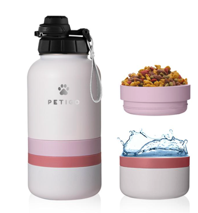 Simplifying pet travel with the PetiGo 3 in 1 travel bottle with two detachable bowls for food and water!